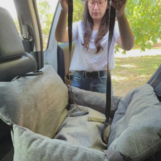 Transporte sin esfuerzo: Equipada con dos correas de broche ajustables, esta cama se guarda fácilmente en forma de maleta y se transporta sin complicaciones. Además, incluye dos cinturones de seguridad que se enganchan al arnés de tu mascota, ofreciendo una capa extra de protección en cada viaje.